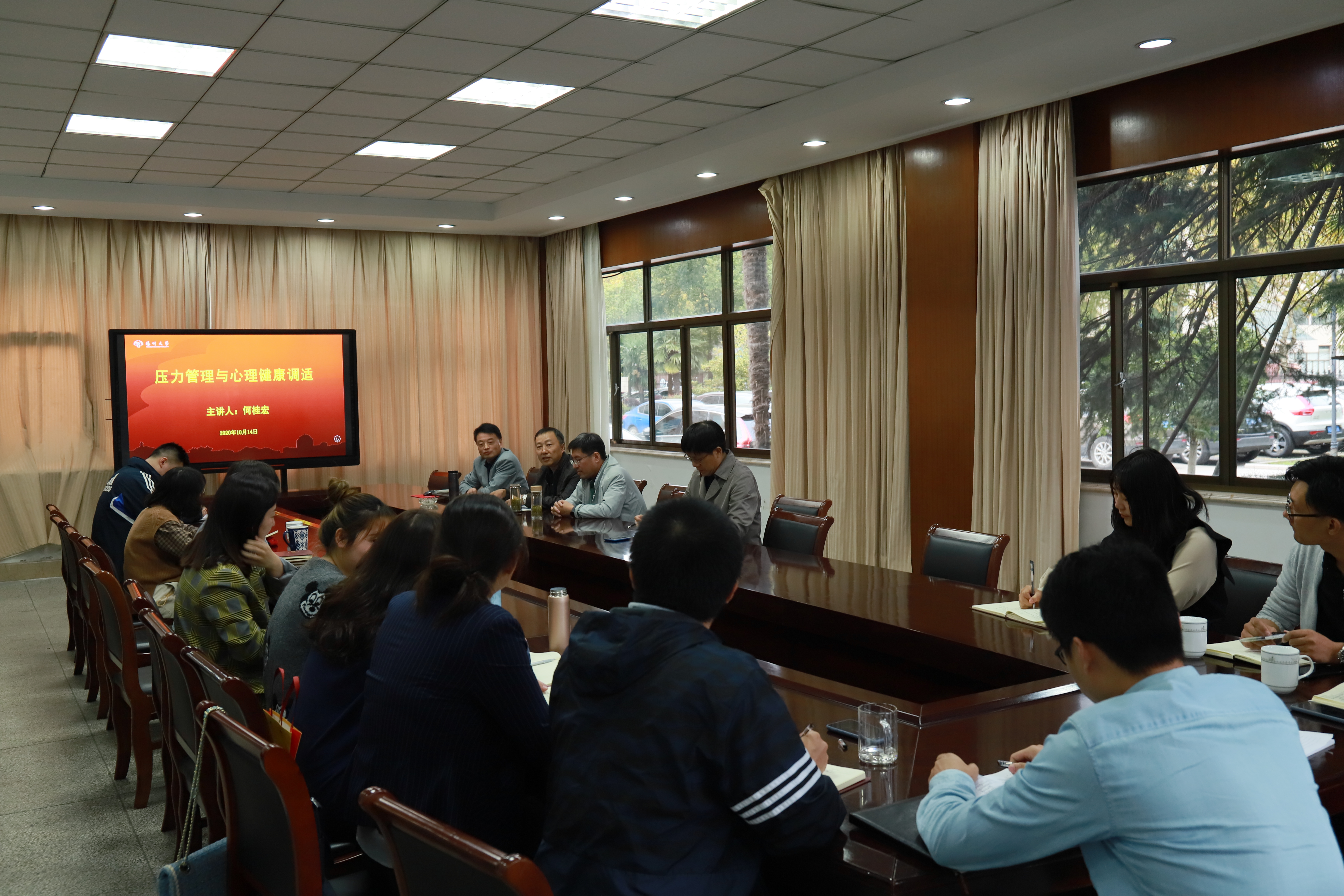 王晖军以《当前中国经济现状简析》为题,从中美关系的视角切入主题,对当前中国经济现状“上半场”“下半场”进行深入剖析,并对社会合作工作建言献策;何桂宏以《压力管理与心理调适》为题,以当前人们面临的社会压力为背景,重点讲述了压力调节方法和原则,并从五个维度对参会人员进行了心理健康测试。