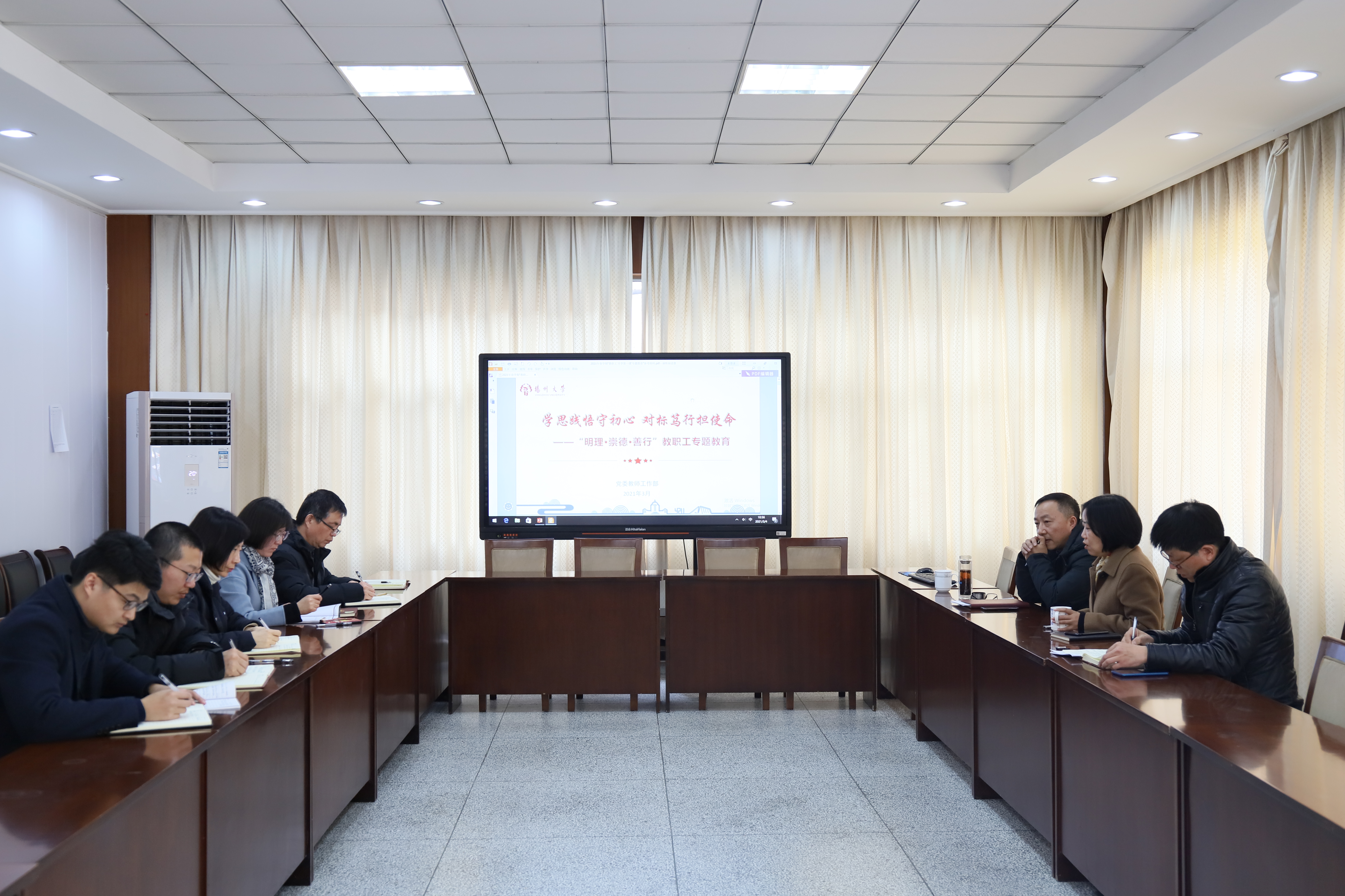 3月4日上午,社会合作与服务处在行政楼115会议室开展“明理·崇德·善行”教职工专题教育。