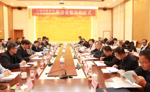 5月12日上午,社会合作与服务处、科学技术处、动物科学与技术学院应邀赴青海省海东市参加海东农业园区与江浙科教单位座谈会,并签署相关合作协议。