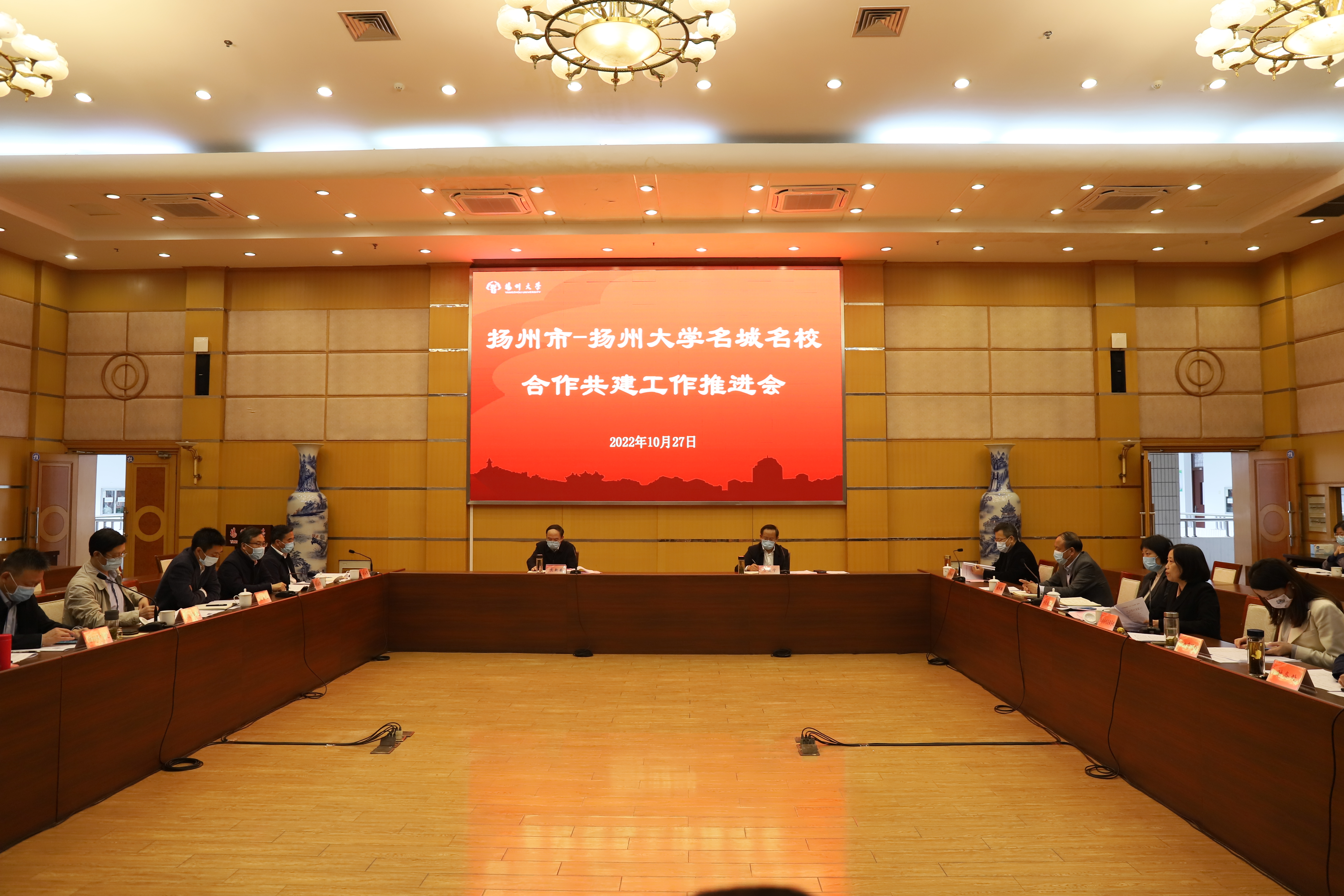 10月27日下午,扬州市-扬州大学名城名校合作共建工作推进会在荷花池校区教学主楼二楼多功能厅举行。校党委书记焦新安、校长丁建宁、副校长赵文明出席会议并讲话。党委副书记周如军主持会议。