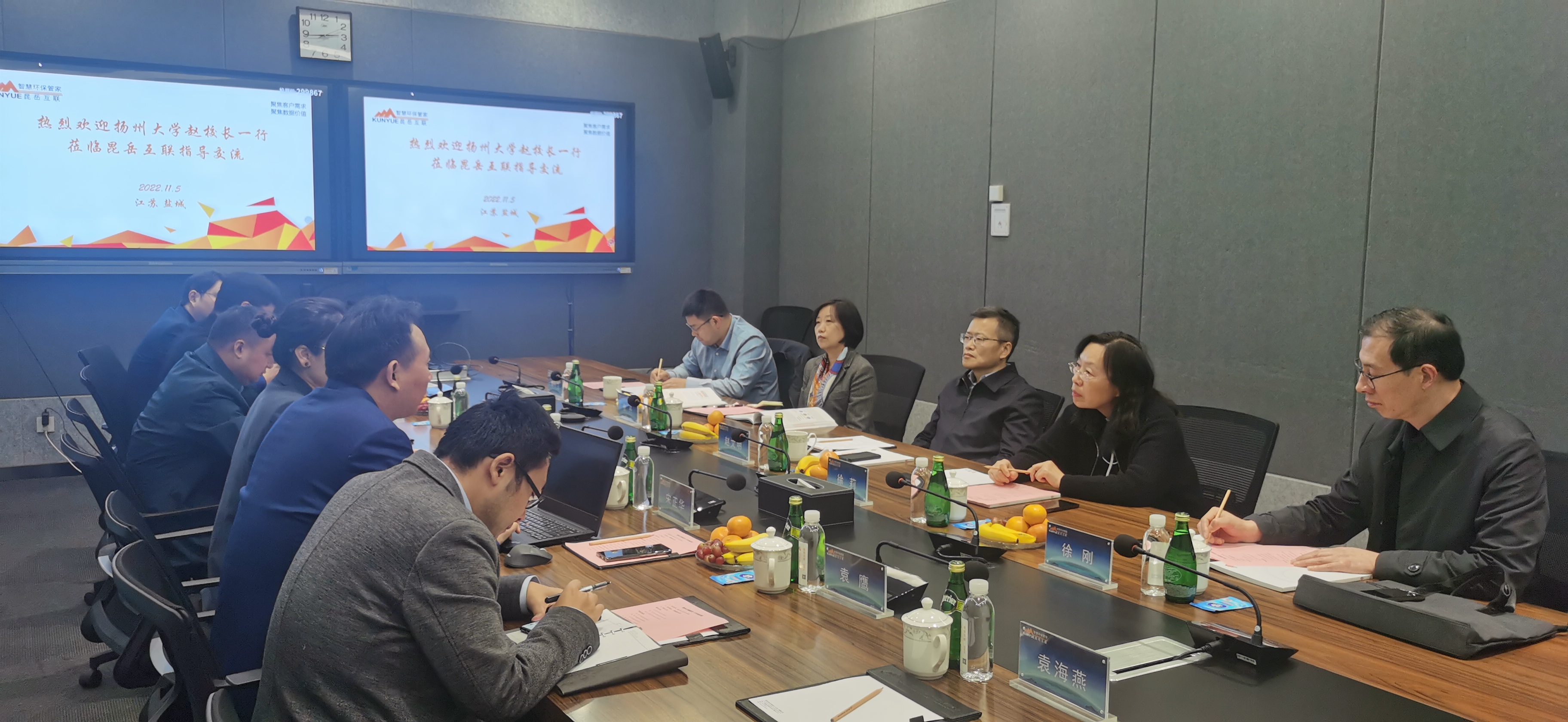 11月5日,副校长赵文明率队赴昆岳互联环境技术有限公司洽谈校企合作事宜。社合处处长张丹,科技处副处长章小卫,昆岳互联执行总裁周玲霞、副总裁宋正华等出席洽谈活动。