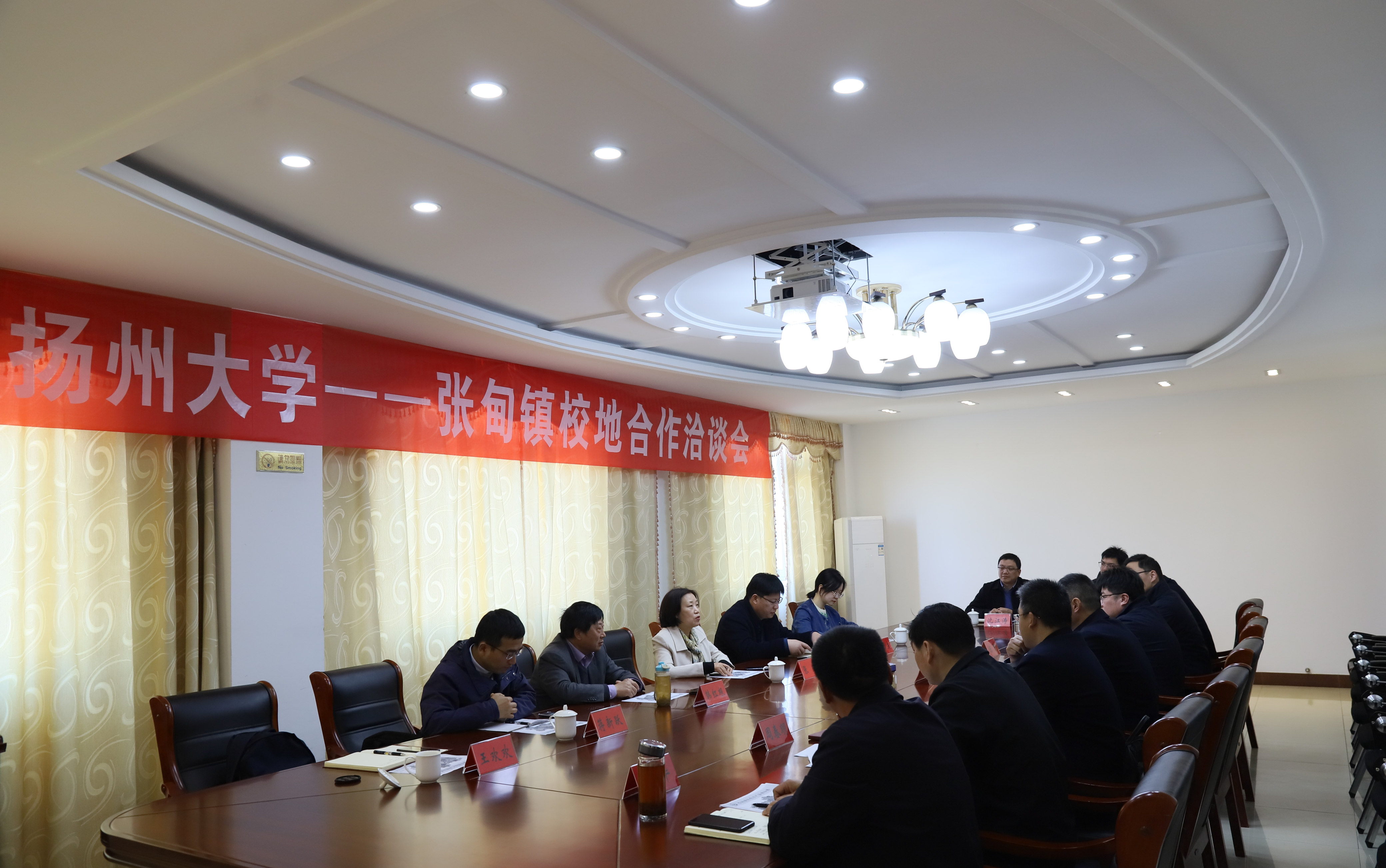 3月14日,社合处处长张丹一行赴姜堰区张甸镇洽谈合作。张甸镇党委书记宋华卿、镇长王志刚出席洽谈会。