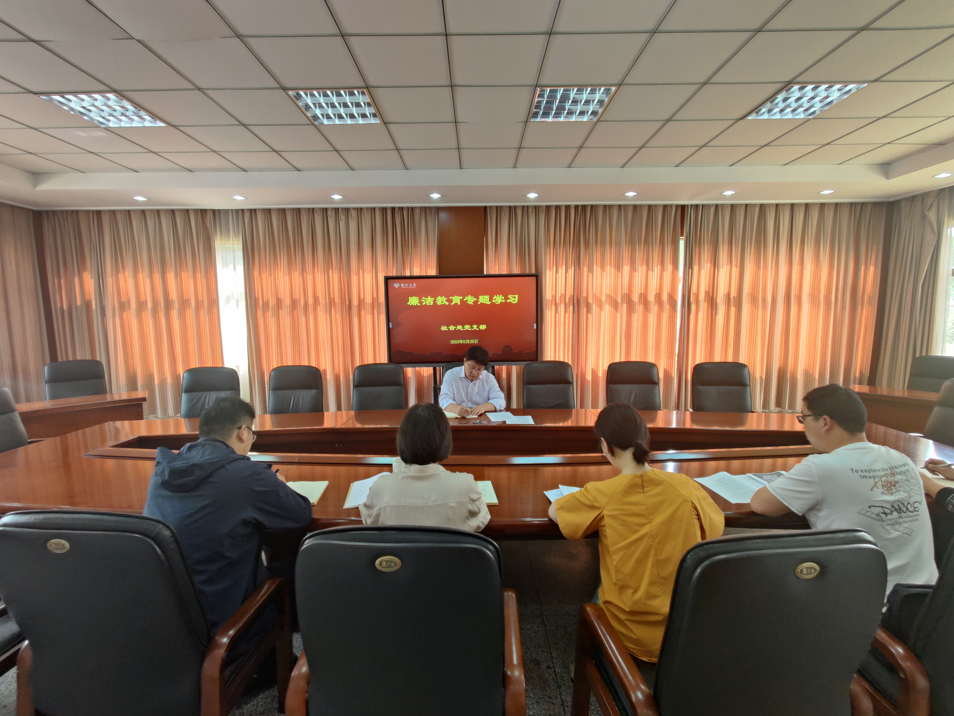 5月25日下午,社合处党支部在行政楼104会议室开展学习贯彻习近平新时代中国特色社会主义思想主题教育学习会。