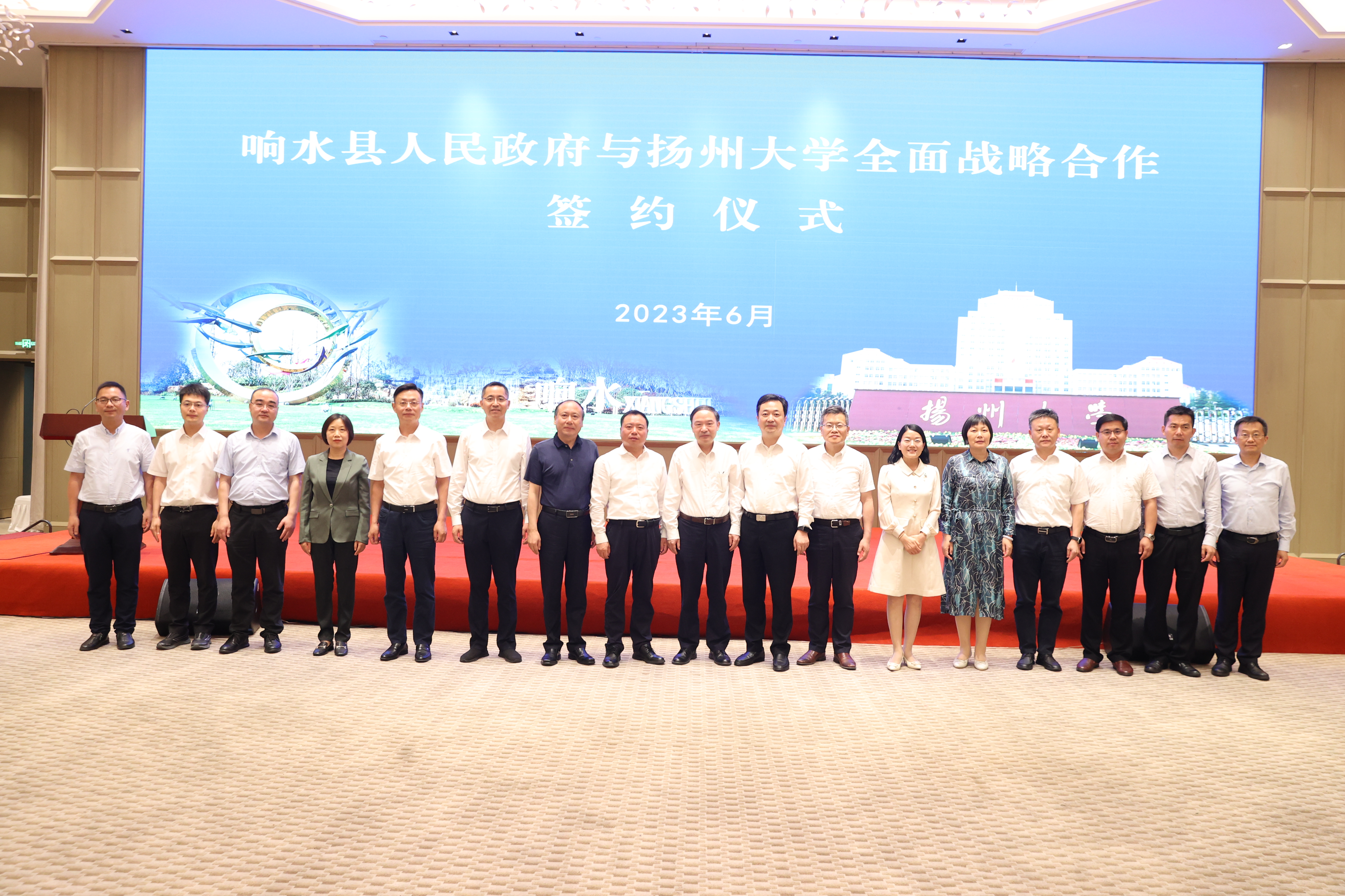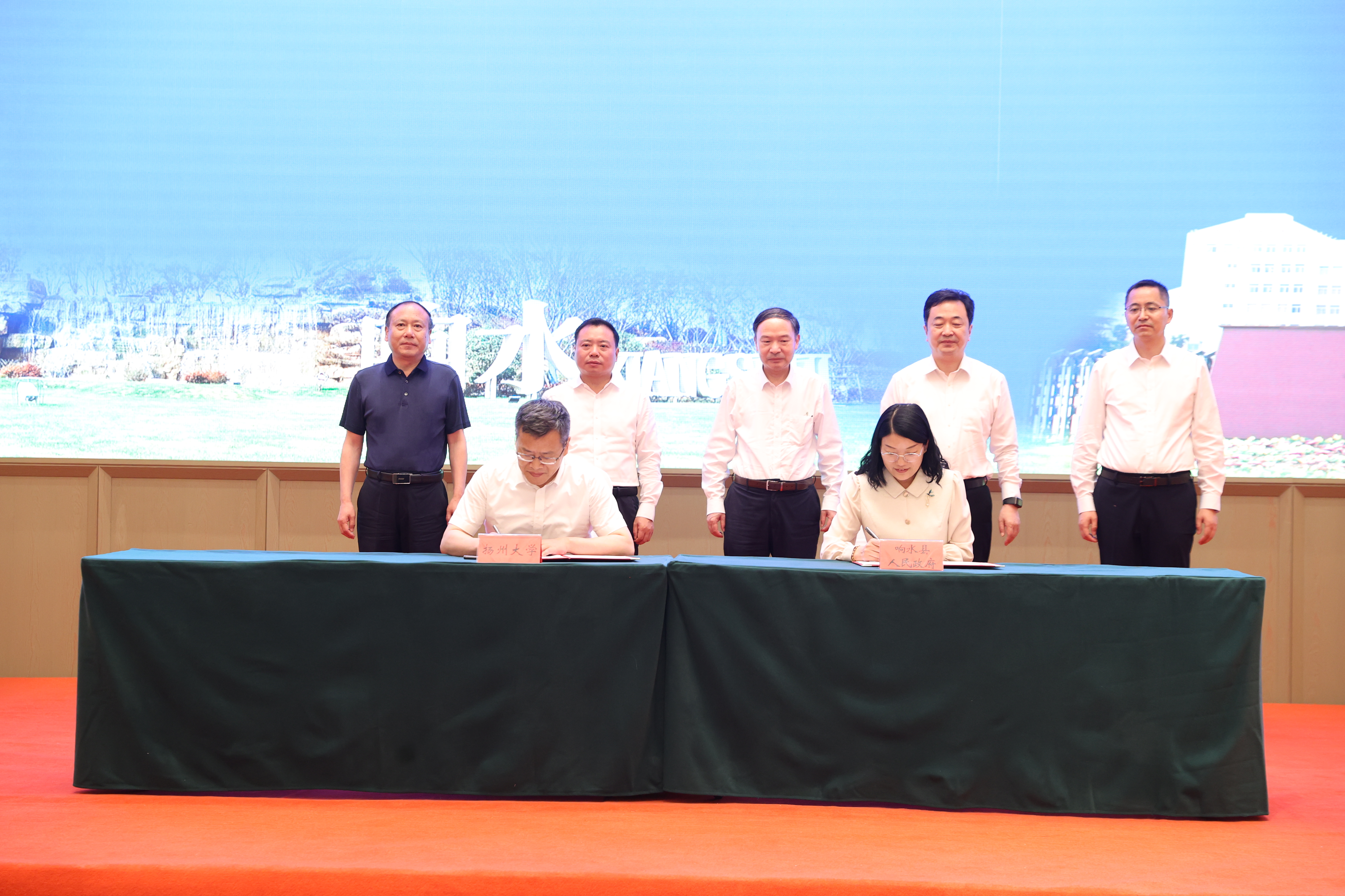 6月14日,学校与响水县人民政府全面战略合作签约仪式在响水县举行。校党委书记焦新安,盐城市委常委、组织部部长费坚,响水县委书记郭超出席仪式并讲话。副校长赵文明,盐城市委人才办副主任倪一华,响水县委常委、组织部部长梅真卿,副县长周汝琴、张炜生、张璐等出席签约仪式。响水县委副书记、县长陆文忠主持签约仪式。