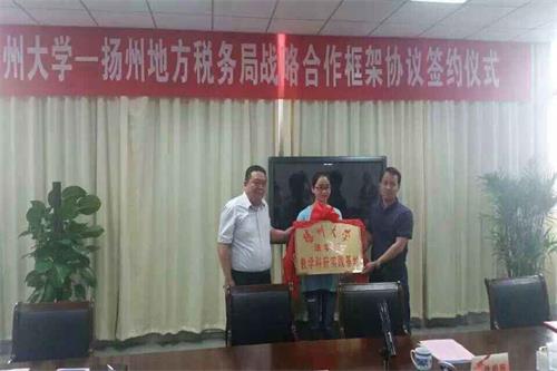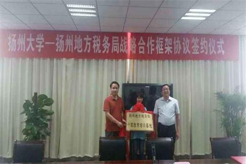 仪式上,还举行了扬州市地方税务局与法学院人才培养合作协议签字仪式暨“扬州地方税务局干部教育培训基地”和“扬州大学法学院教学科研实践基地”揭牌仪式。