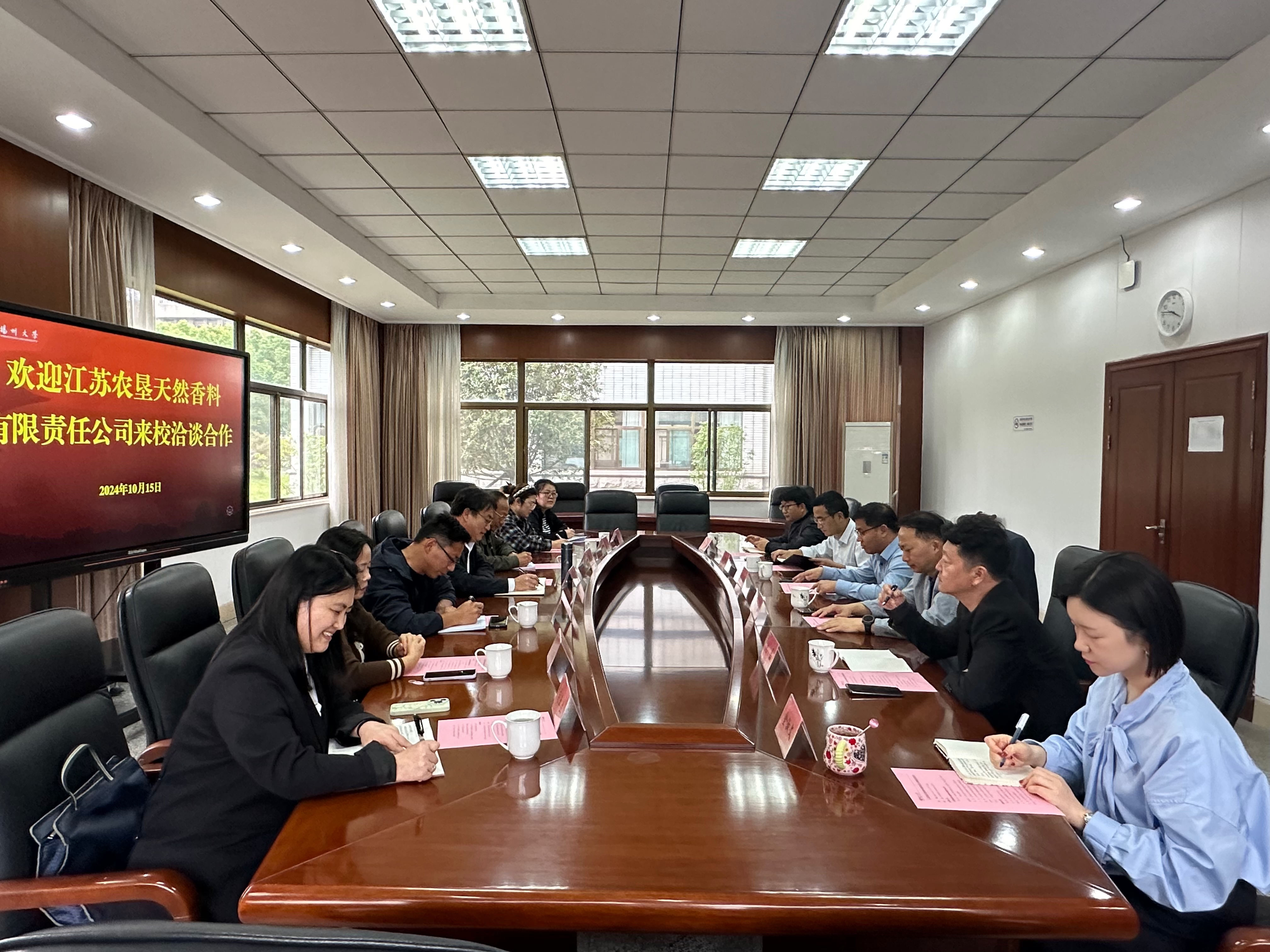 10月15日,江苏农垦集团新曹农场公司总经理刘军一行来校洽谈合作。