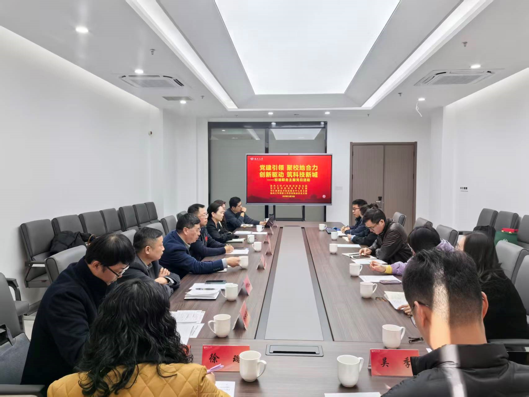 12月16日,产业技术处党支部联合邗江科技局机关党支部、邗江高新技术创业服务中心党支部、扬州高新区扬大科技园创客党支部共同开展“党建引领聚校地合力,创新驱动筑科技新城”校地联合主题党日活动。各党支部书记及支委、产业技术处、邗江区科技局全体负责人参加主题党日活动。
