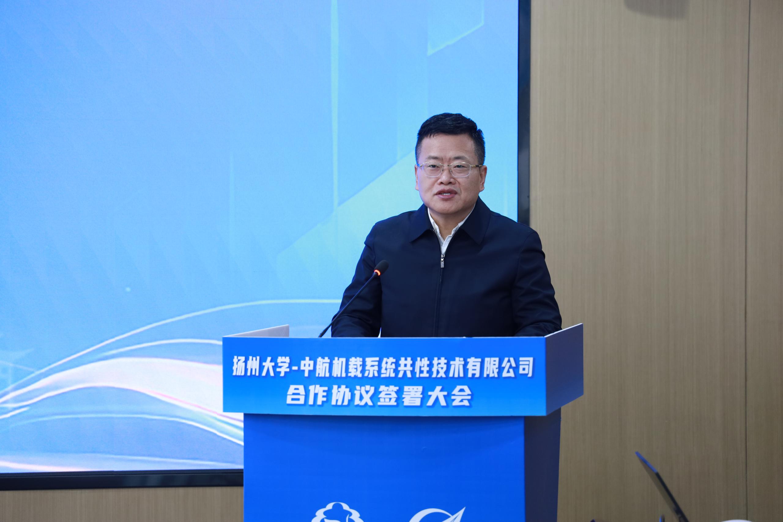 2月13日上午,学校与中航机载系统共性技术有限公司合作协议签署大会在航空工业大厦举行。我校副校长赵文明,广陵区委副书记、宣传部部长王震,共性中心党委书记、董事长周鹏程出席活动并致辞。扬州市科技局党组成员、副局长钱东,扬州市人社局党委委员、人力资源市场管理办公室主任赵斌,我校研究生院常务副院长孙小兵,产业处副处长章小卫出席仪式。
