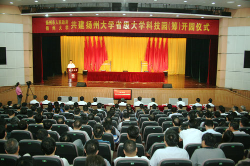 7月1日下午,由扬州市人民政府与扬州大学共建的省级大学科技园(筹)开园仪式在大学生活动中心小剧场隆重举行。省科技厅副巡视员蒋洪宣读《省科技厅、省教育厅关于同意筹建扬州大学省级大学科技园的批复》。校党委书记夏锦文代表学校致辞。扬州市长朱民阳、校长焦新安共同为科技园揭牌。扬州市常务副市长丁纯主持仪式。扬州市副市长孔令俊,校领导刘延庆、刘祖汉、黄建晔、叶柏森、陈国宏等出席仪式。