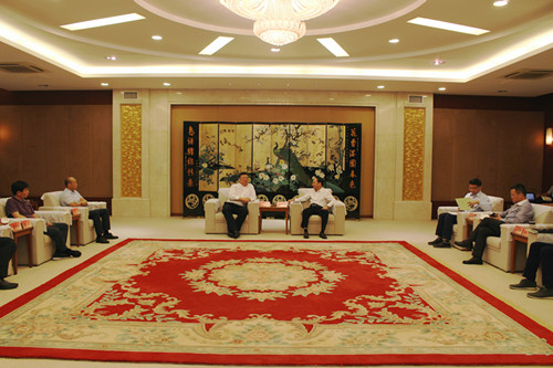 日前,清华大学副校长尤政一行来我校调研交流。校长焦新安会见来宾。