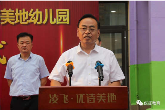 仪征市副市长赵建芳、仪征市教育局陈宏军局长分别代表仪征市政府和仪征市教育局致辞并讲话。他们表示,扬州大学学前教育学院附属优诗美地幼儿园正式揭牌,是仪征市学前教育事业发展历程中的一桩盛事,在双方的共同努力下实现合作共建效益的最大化,促进仪征市学前教育向高质量、高品质发展的方向全面迈进。