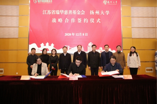12月8日,“江苏省瑞华慈善基金会-扬州大学”战略合作协议签订仪式在我校举行。校党委书记姚冠新出席仪式并讲话,江苏省瑞华慈善基金会副理事长张奥星、史兆荣,校党委副书记叶柏森,副校长陈亚平等参加活动,仪式由学校教育发展基金会理事长陈耀主持。