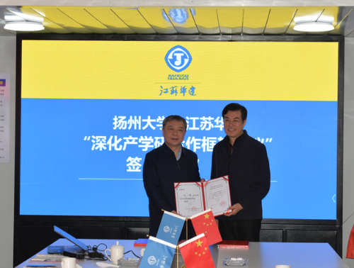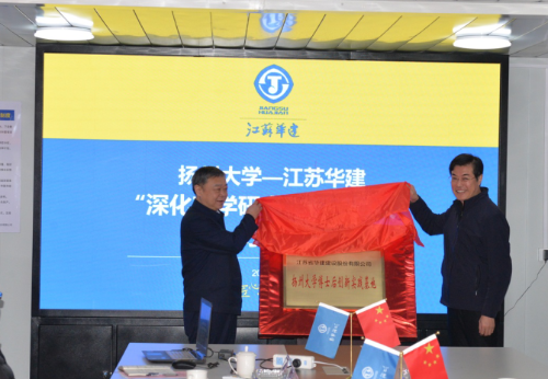 院长康爱红与钱启明签订深化产学研合作框架协议。叶柏森与王宏为“扬州大学博士后创新实践基地”揭牌。