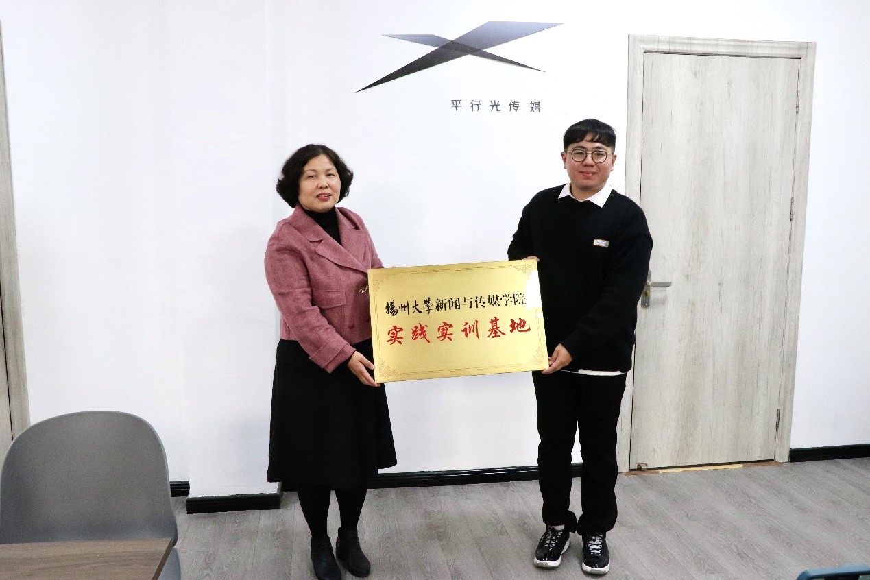 11月28日,新闻与传媒学院与扬州平行光文化传媒有限公司实践实训基地签约揭牌仪式圆满举行。副院长武新宏、数字媒体艺术系主任张书端、广播电视专业班主任杨帆,平行光文化传媒有限公司负责人翟成等共同出席此次活动。