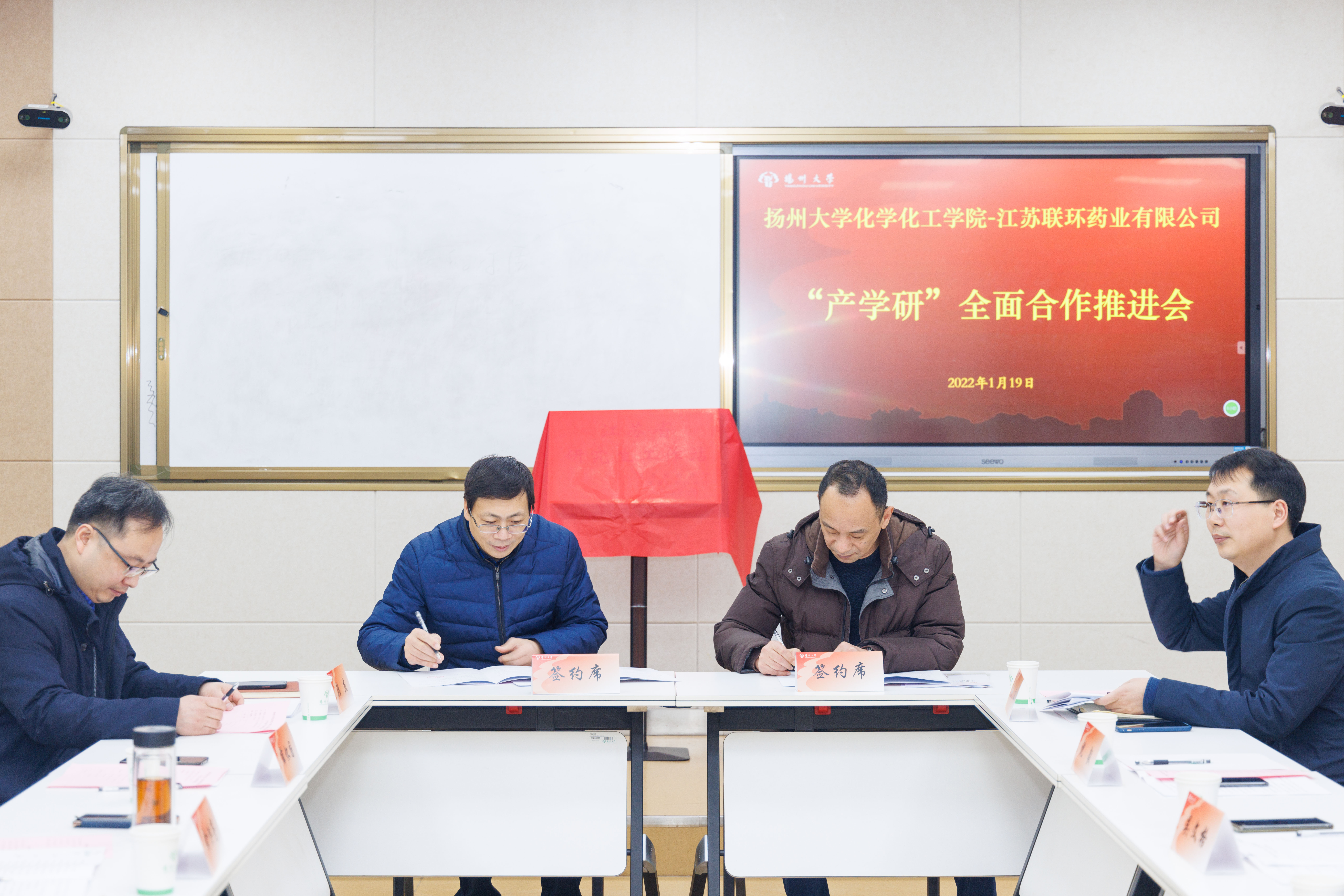 1月19日,化学化工学院与江苏联环药业有限公司“产学研”全面合作推进会在瘦西湖校区新化馆举行。副校长俞洪亮、联环药业董事长吴文格、校研究生院常务副院长薛怀国出席会议。