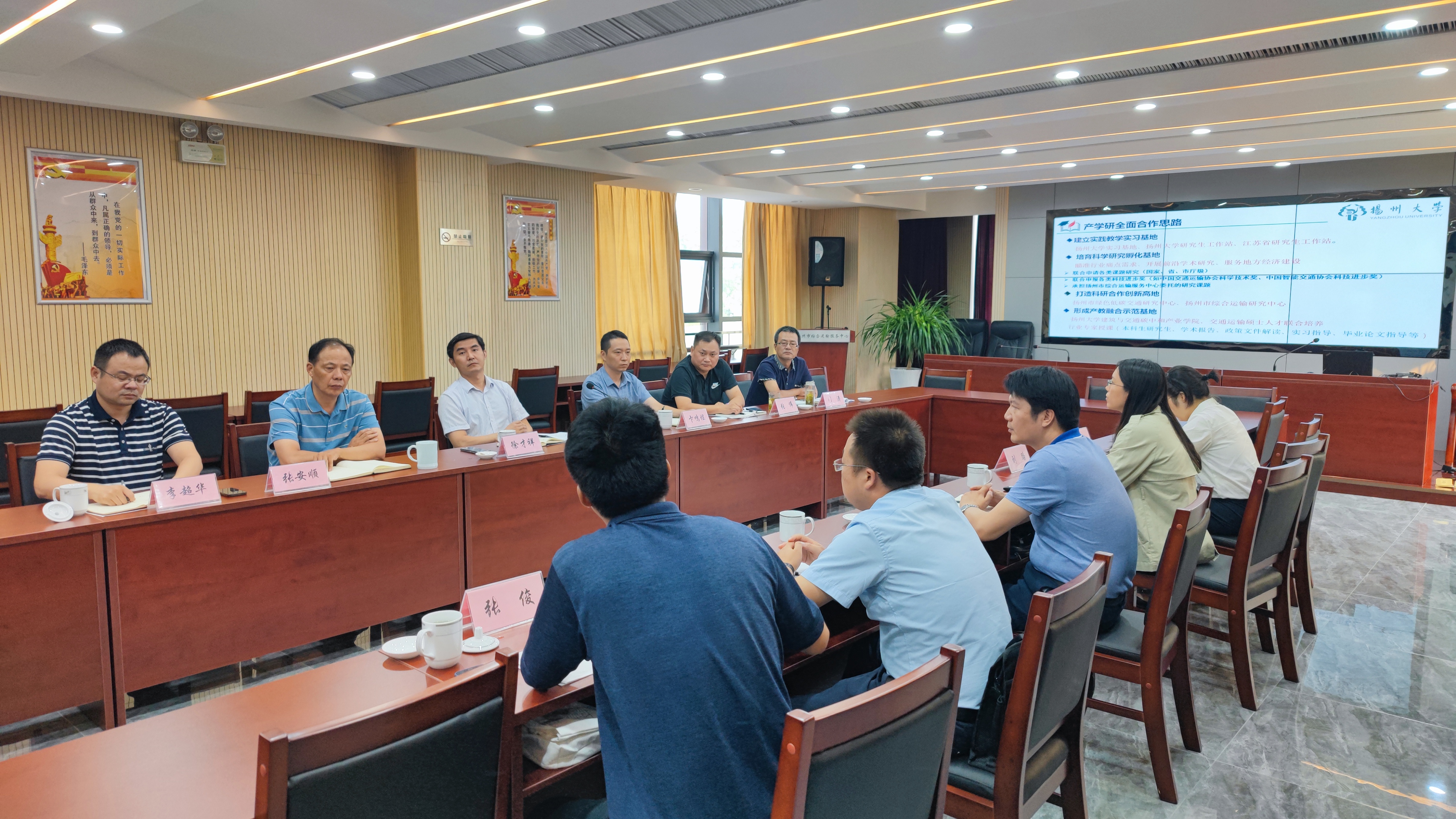 8月2日下午,建工学院与扬州市综合运输服务中心开展全面产学研合作交流座谈,副院长邓社军、扬州市综合运输服务中心主任徐才祥、张安顺以及中心各科室领导,学院交通系部分教师均出席了本次座谈。邓社军首先介绍了建工学院智慧交通与低碳减排研究团队的基本情况和研究方向,徐才祥介绍了扬州市综合运输服务中心的工作定位和发展思路,双方就公共交通出行服务、货物运输路径优化、城市客运管理等热点问题展开了热烈的探讨,充分交流了意见。
