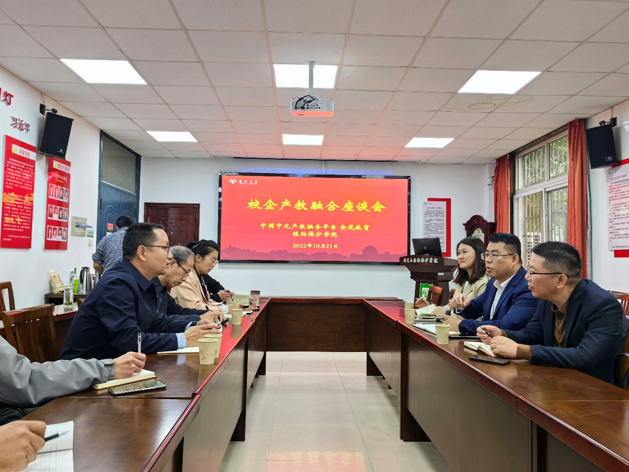 10月21日下午,中国中化集团产教融合平台姜禹同总经理、金茂教育集团范凌主任等一行三人到植物保护学院交流访问,学院党委书记侯燕、院长杨国庆、副院长刘景澜表示热烈欢迎并亲切接待来访客人。