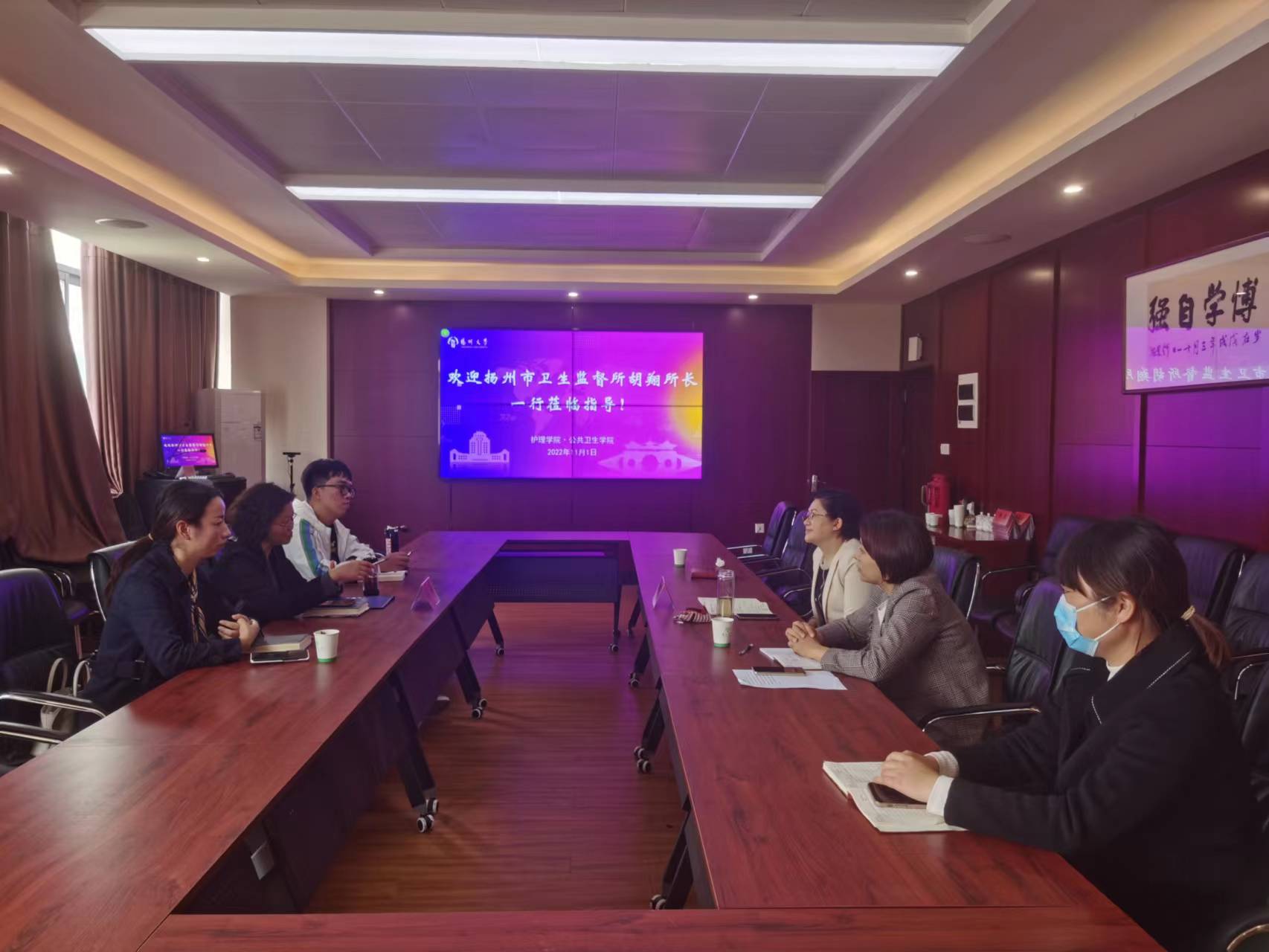 郑英介绍了扬州大学及学院的基本情况,表达了与市卫生监督所在人才培养、学生实习、实践基地建设、人员培训等多个方面开展合作的愿望,双方共同探讨了合作目标、合作机制和合作模式。