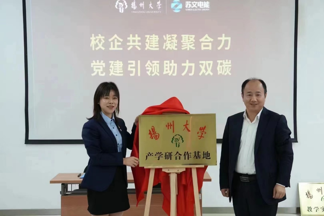 会上,校企双方就“双碳”主题进行了交流与讨论,学院副院长张继勇和苏文电能研究院院长张金龙分别做了“双碳”主题党课。双方表示就“双碳”主题要进一步加强校企合作。随后,学院党委书记张陟遥、院长杨华分别与企业代表为“教学实习基地”、“产学研合作基地”揭牌。
