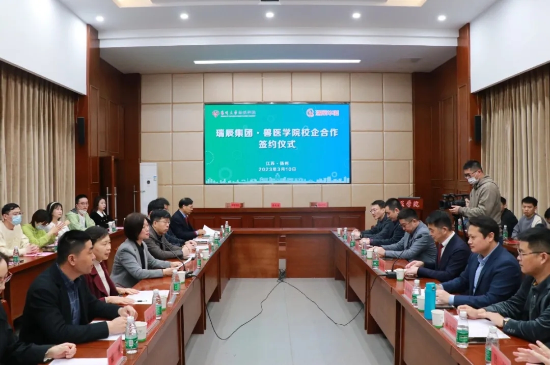 学院聘请瑞辰集团学科带头人及临床专家为“扬州大学兽医学院硕士研究生校外指导教师”,首批聘任导师为杨其清、裴增杨、钱小亮、徐卫祥,王跃军,丁恺等。兽医学院院长王志强对首批聘任研究生校外导师颁发聘书。