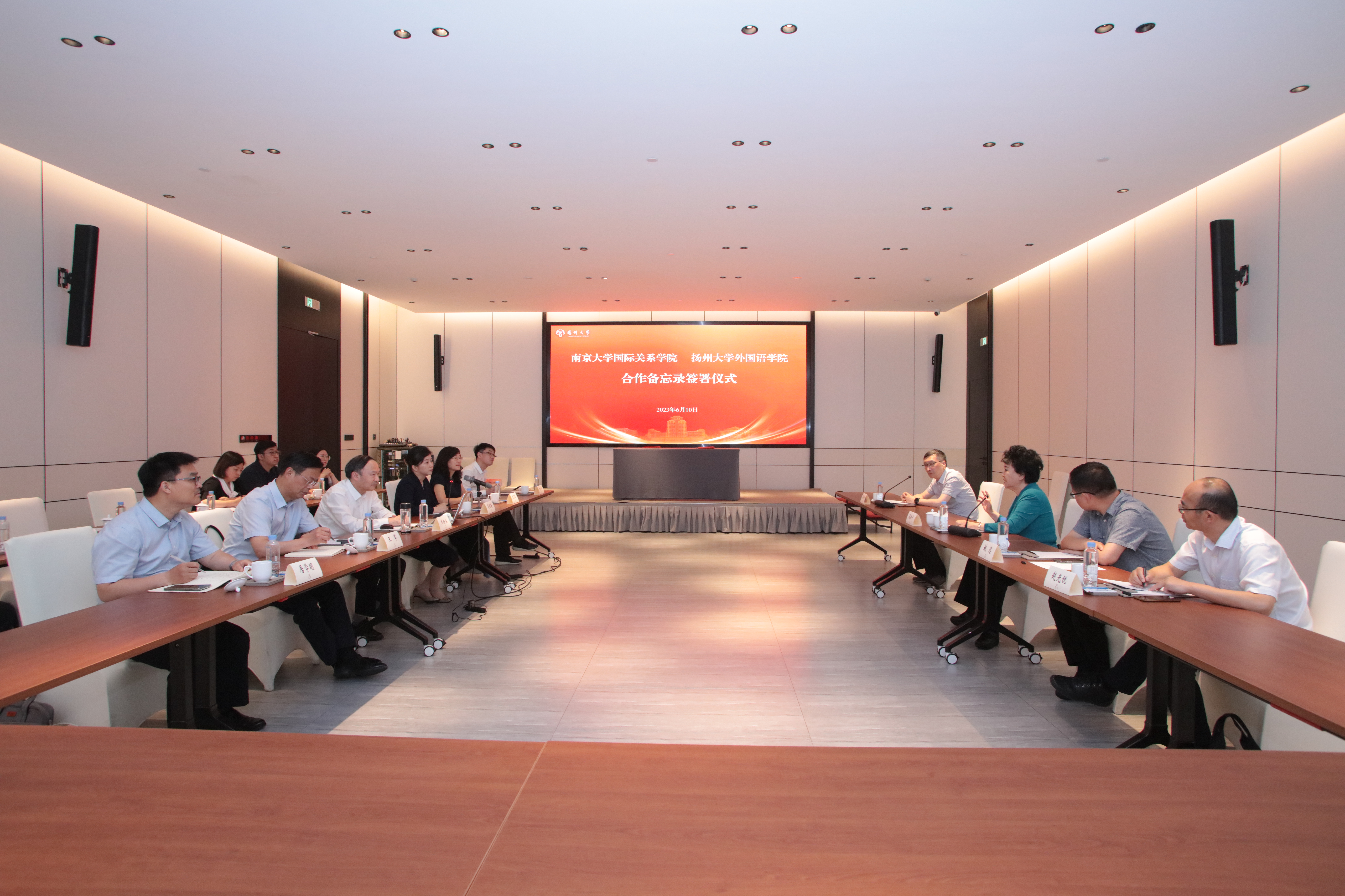 6月10日,我校外国语学院与南京大学国际关系学院举行合作备忘录签署仪式。中央外办原常务副主任、国务院侨办原主任、党组书记裘援平,校党委书记焦新安,南京大学副校长张峻峰出席仪式。副校长蔡颖蔚主持仪式。