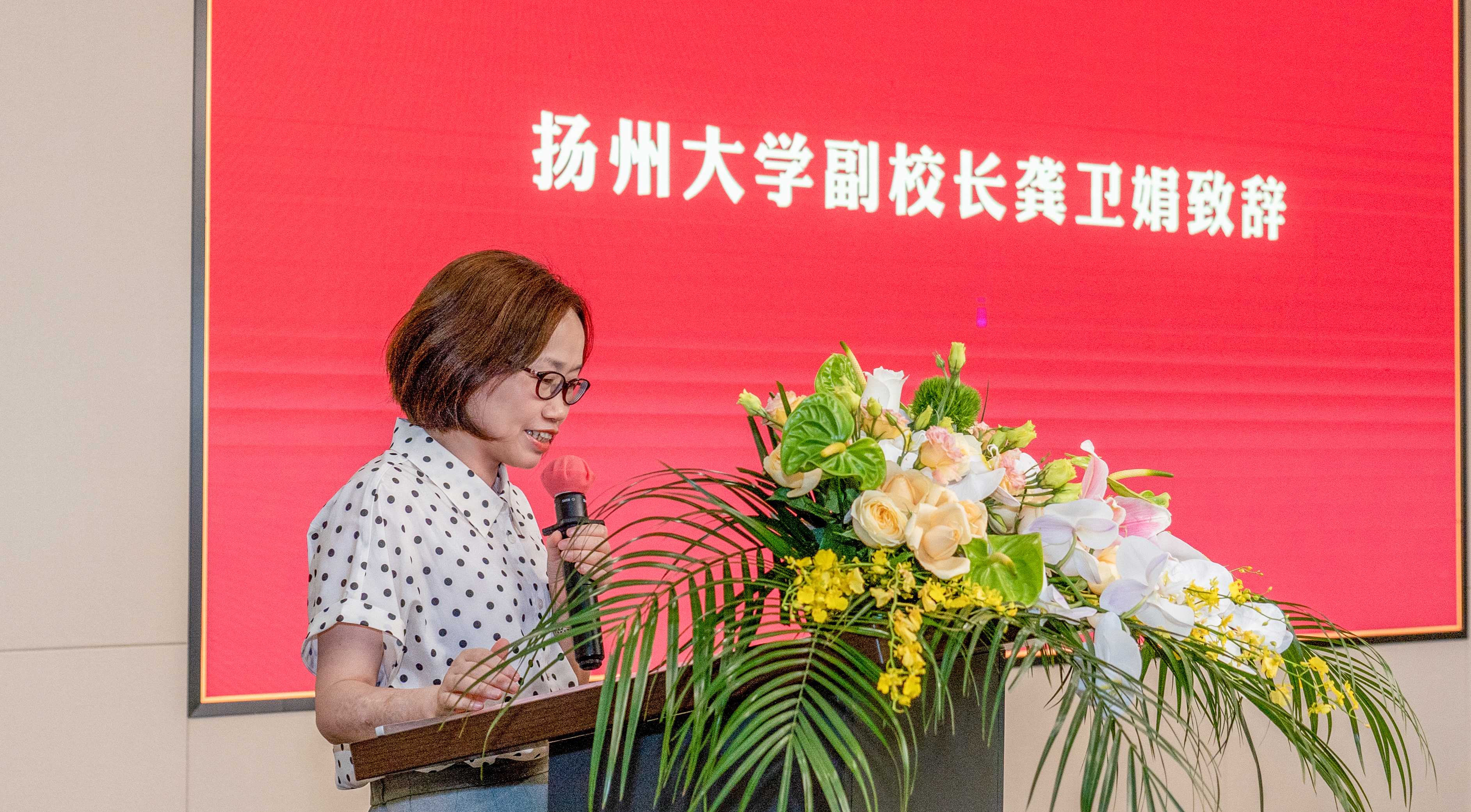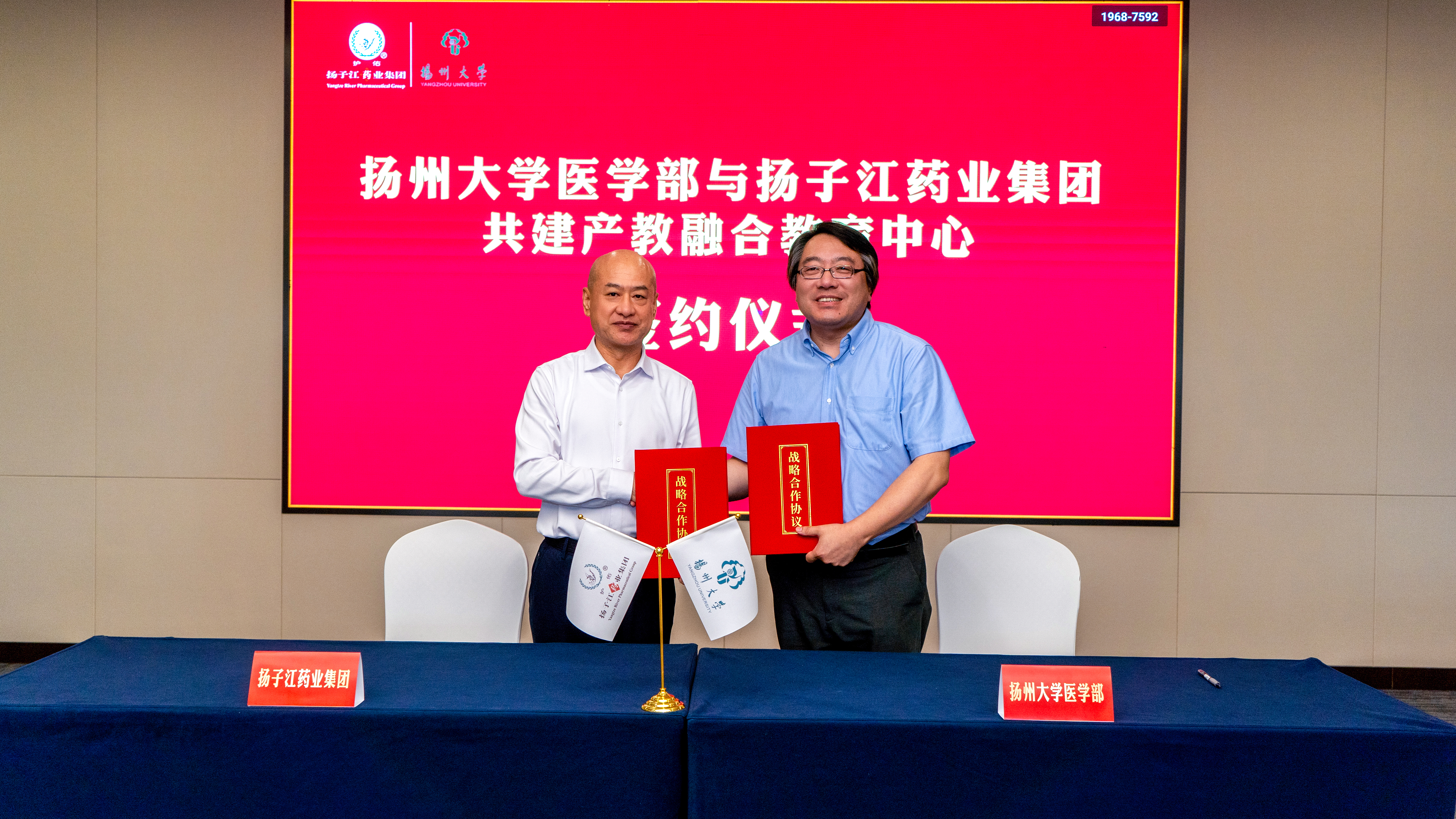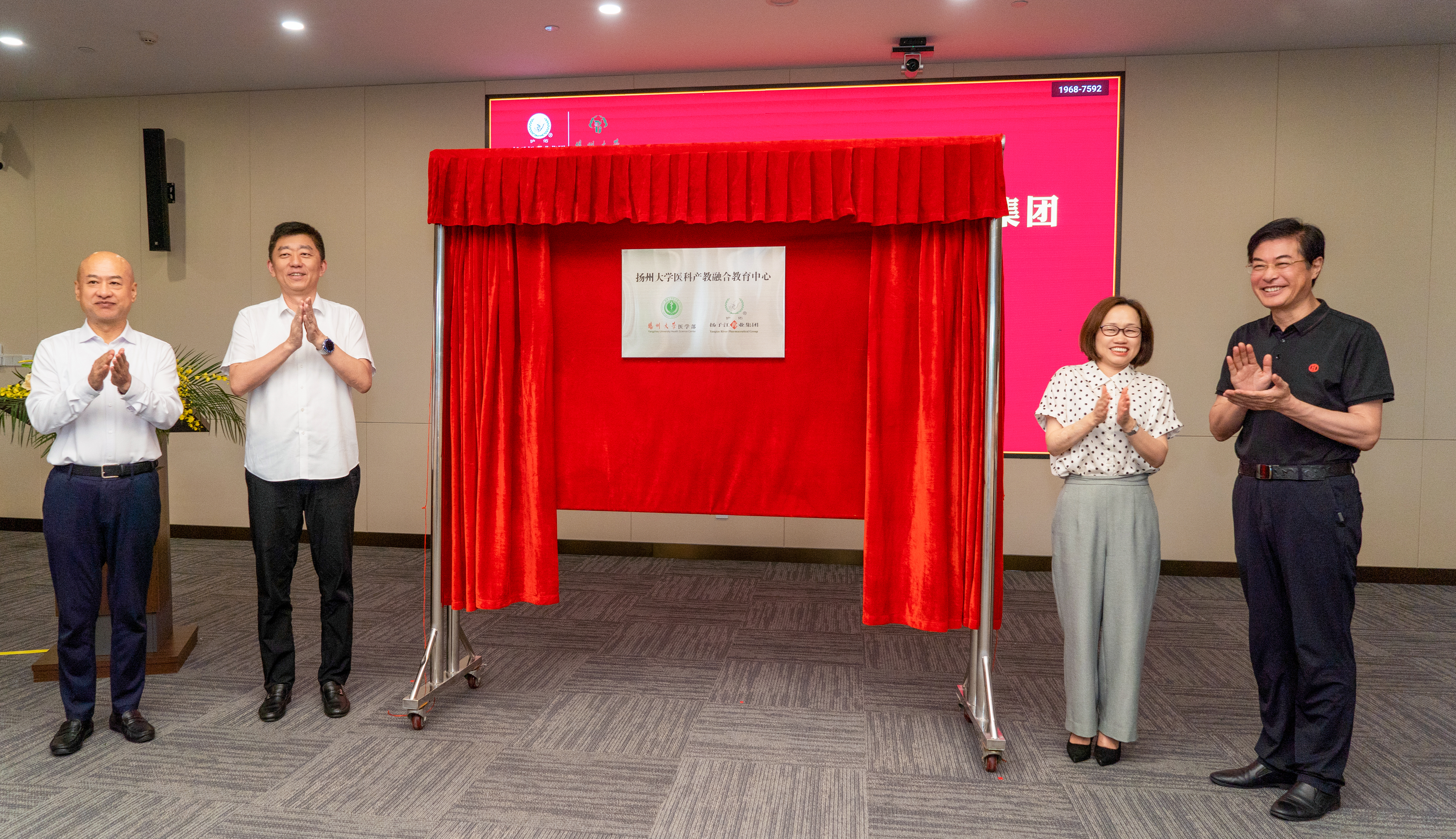 6月26日下午,医学部与扬子江药业集团举行共建产教融合教育中心签约揭牌仪式。扬子江药业集团党委书记、董事长、总经理徐浩宇,副校长龚卫娟分别致辞并共同为“扬州大学医科产教融合教育中心”揭牌。教育部高校思想政治工作队伍培训研修中心(扬州大学)主任叶柏森出席仪式。