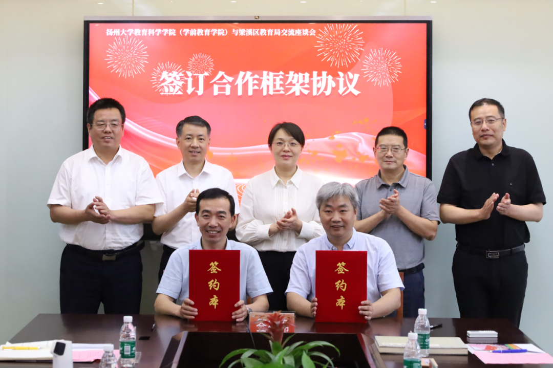为深入推动学院事业高质量发展,持续提升人才培养服务区域教育高质量发展的能力和水平,在前期多轮接触和沟通磋商的基础上,2023年6月11日上午,学院与无锡市梁溪区教育局在无锡市侨谊中学一楼会议室正式签署深化教育合作框架协议,决定就“扬州大学-梁溪区高质量教育区域推进系列项目”开展合作。协议签订后,双方并就博士培养、优秀毕业生就业实习、高校合作项目等继续进行深入洽谈,进一步细化合作安排。