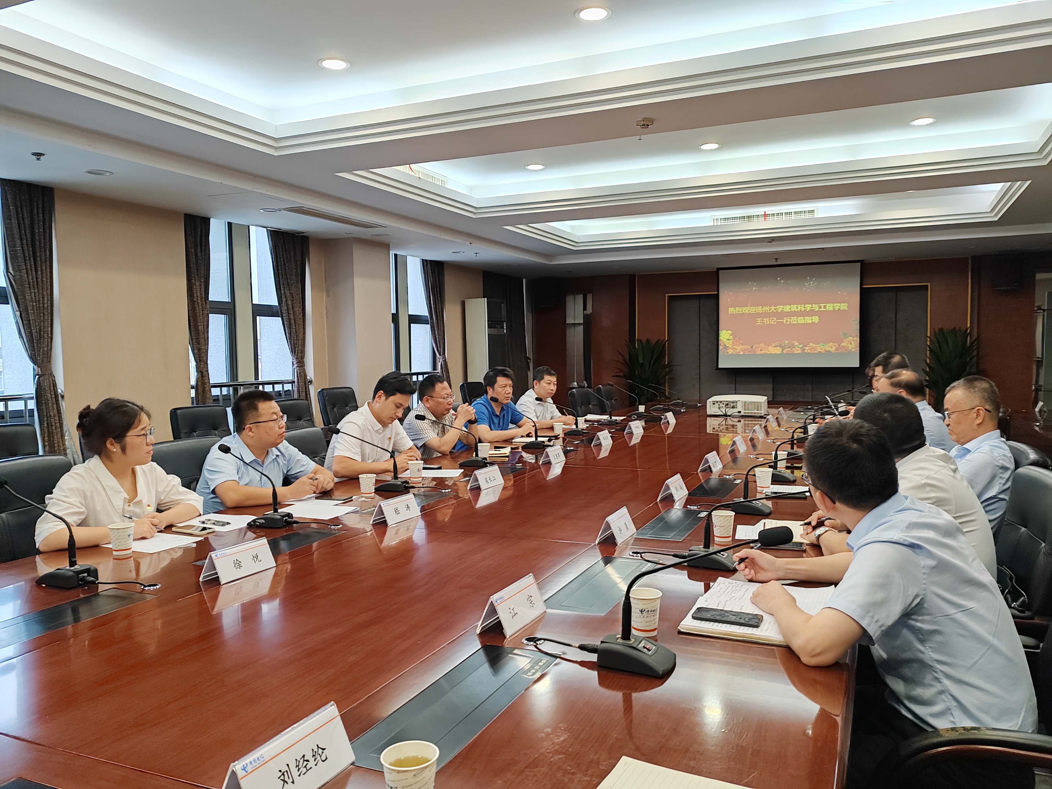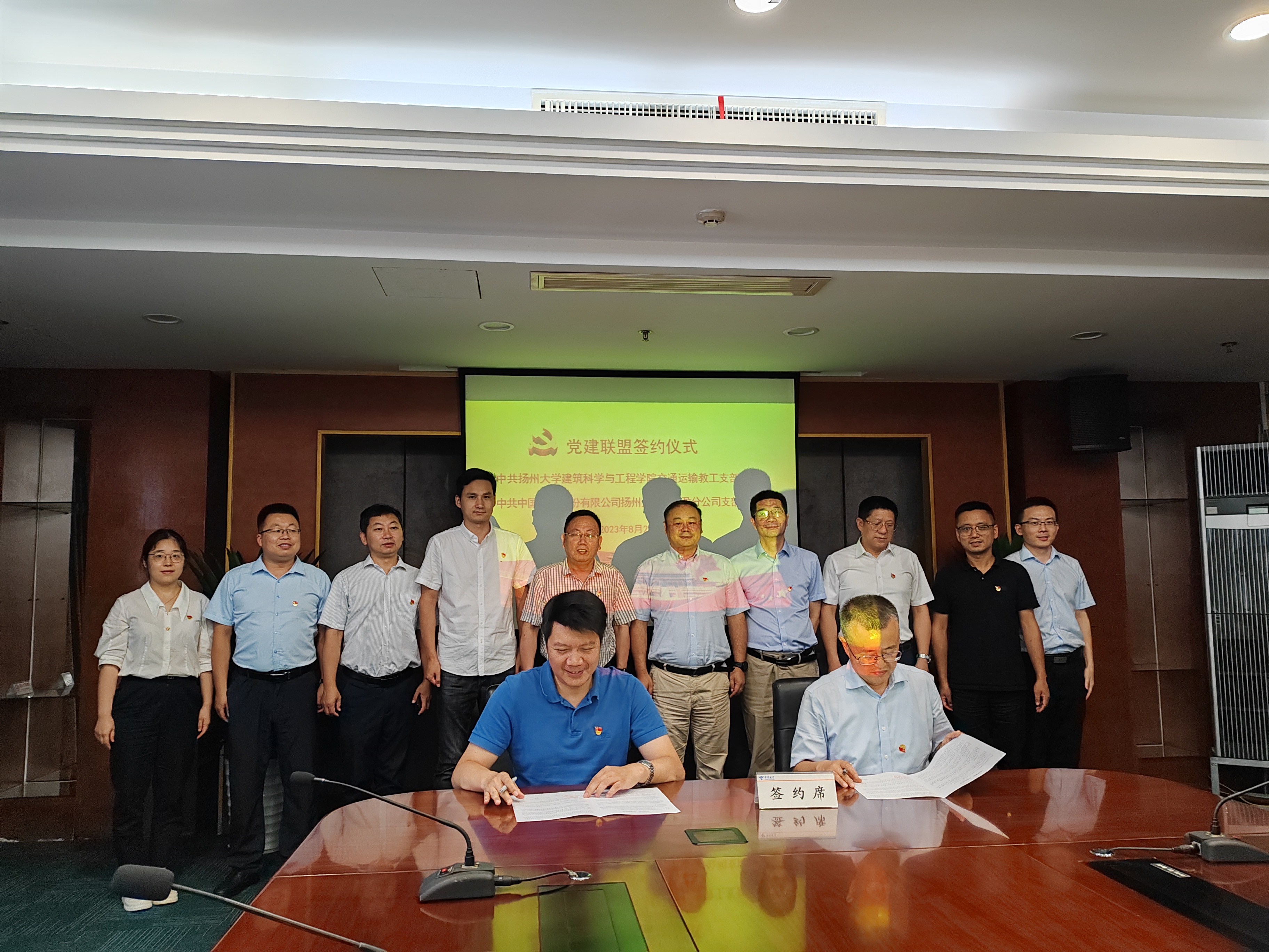 8月28日下午,建筑科学与工程学院与中网科扬州分公司党支部举行党建联盟签约仪式。学院党委书记王恩军、副院长邓社军、扬州电信公司副总经理杜亨亮、中网科扬州分公司党支部书记、总经理房兵等参加本次签约仪式。