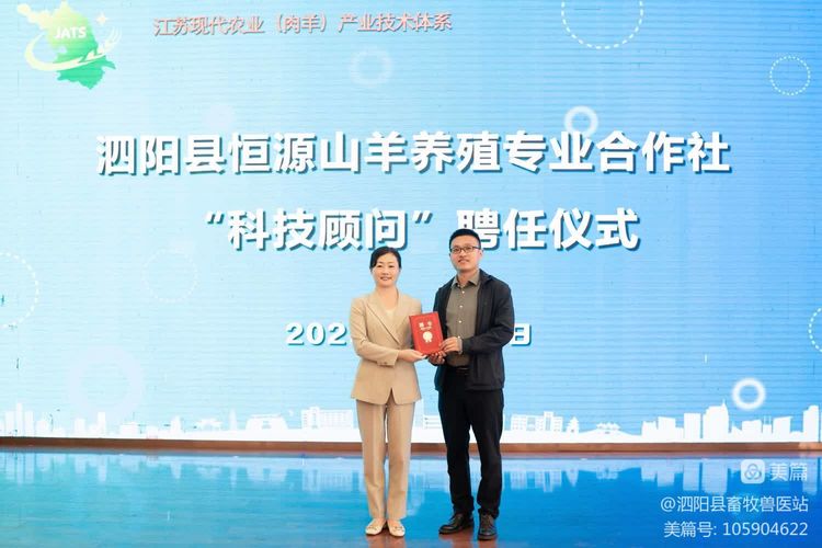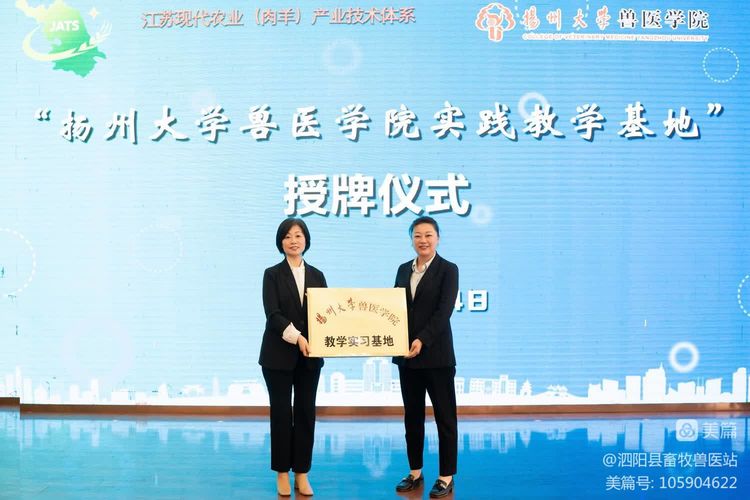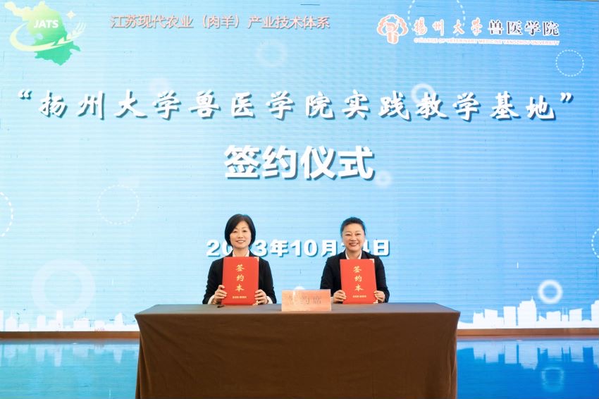 随后,蔡丽娅与泗阳县恒源山羊养殖专业合作总经理杨洪霞进行“扬州大学兽医学院实践教学基地”签约与授牌仪式、与王学红共同签订产学研合作协议,王学红向学院刘明江副教授颁发“科技顾问”聘书。最后,与会主要领导共同见证扬州大学兽医学院“百名教师访百企”活动泗阳基地启动仪式。