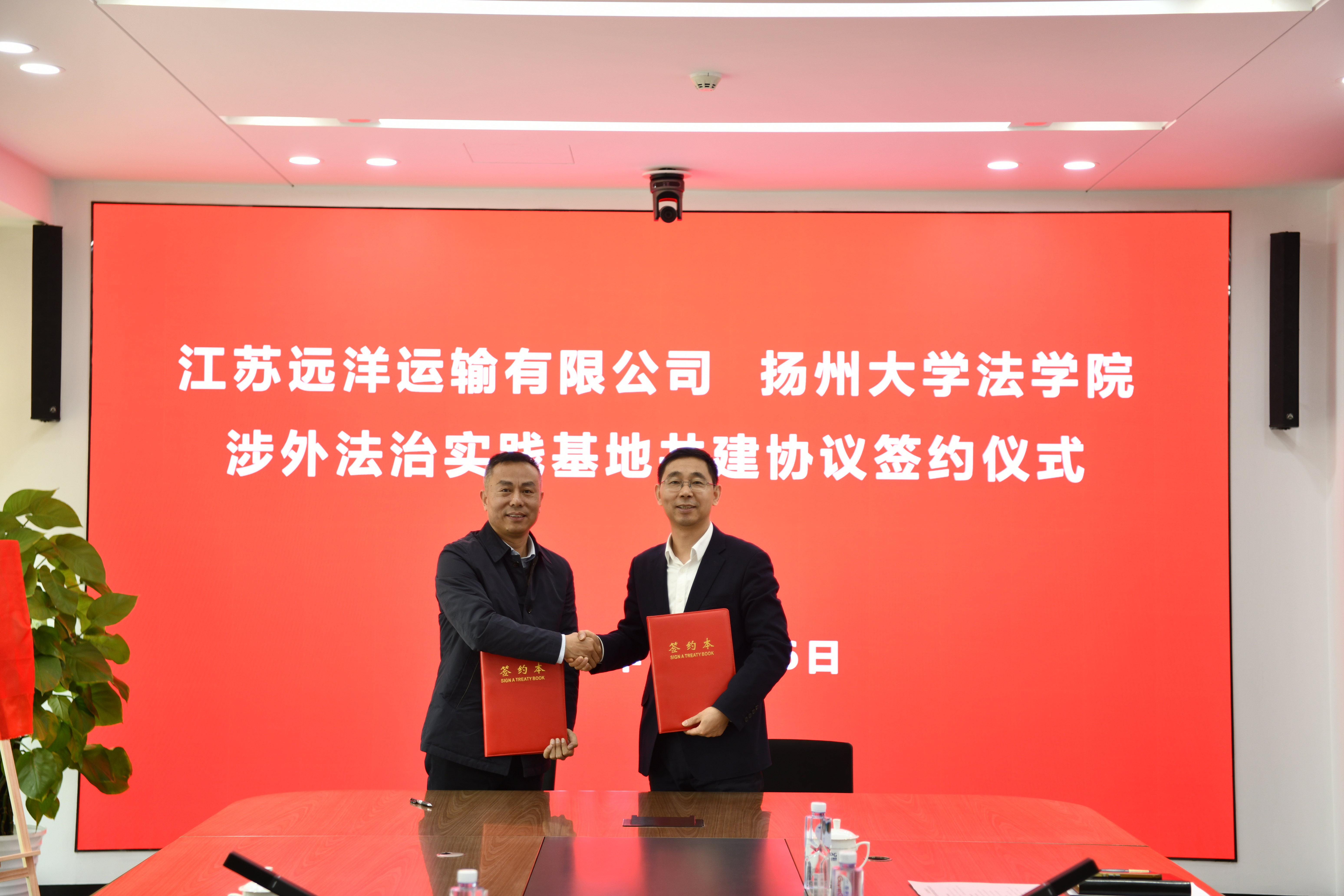 12月26日,法学院与江苏远洋运输有限公司举行涉外法治实践基地共建协议签约仪式。党委书记花瑞锋、党委副书记黄文婷、副院长高永明,江苏远洋运输有限公司党委书记、董事长戴伟,党委副书记、总法律顾问、首席合规官沈艳等参加签约仪式。