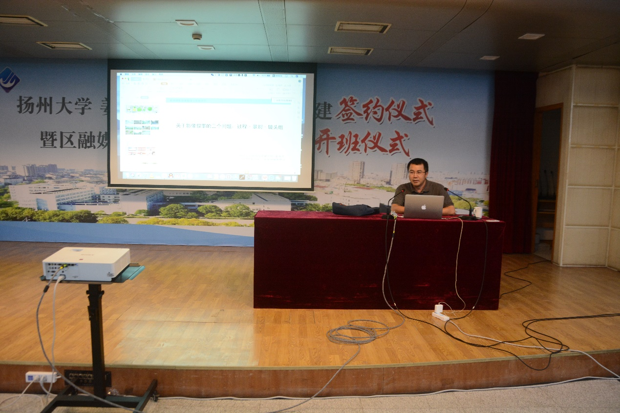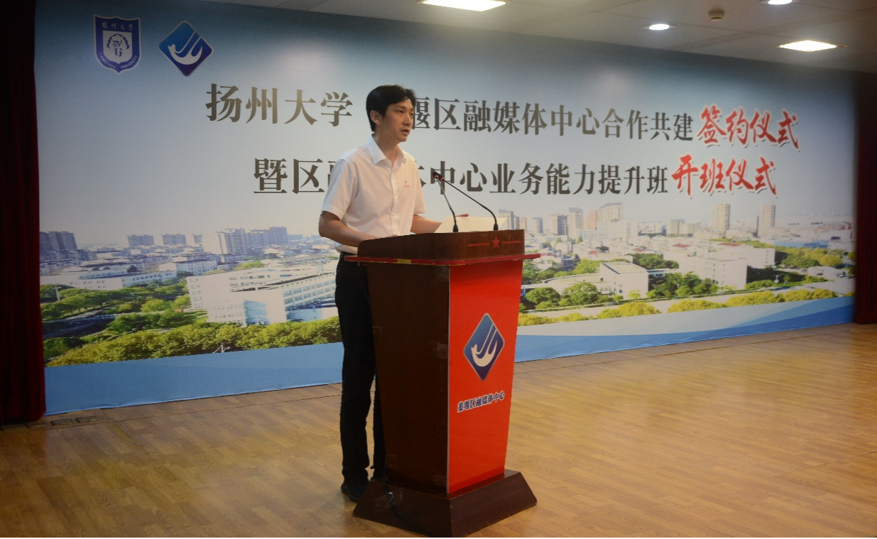 在共建仪式上,丁传华介绍了姜堰区融媒体中心的发展现状以及近年来所取得的突出成绩,并希望通过本次活动,在人才培养、项目合作、业务培训等方面开展全方位的合作,能借助于高校和行业专家学者们的先进理论和技术,助力姜堰融媒全媒体人才培养和媒体融合深度转型,为姜堰区的高质量发展做出新的贡献。他表示,姜堰融媒将充分发挥新闻宣传、影视制作、播音主持、融媒体产品策划制作等方面的优势,为新传学子提供良好的实习实训条件,共同培养适应地方需求、具有较强创新创业能力的优秀人才。
