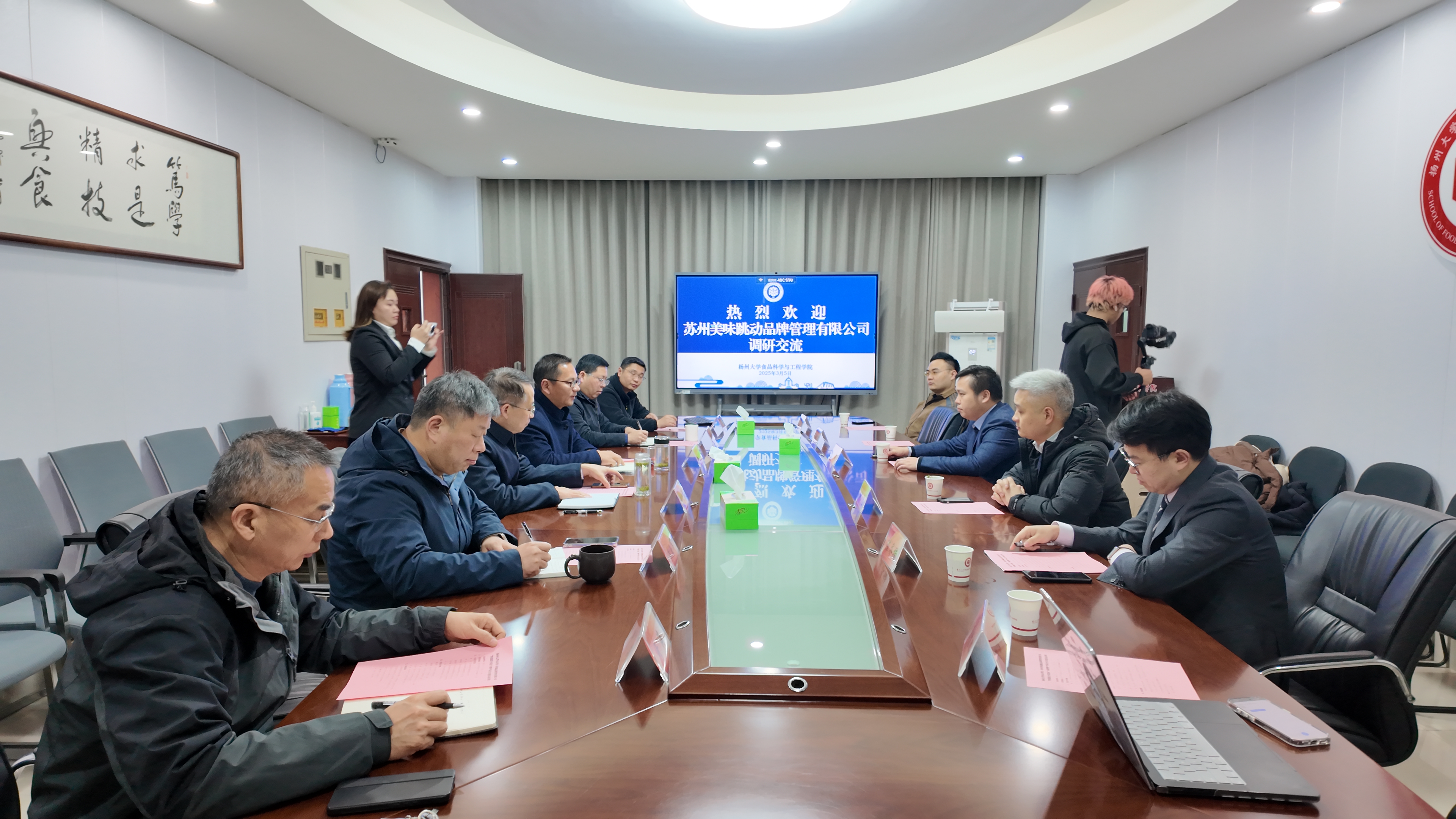 3月5日,食品科学与工程学院与苏州美味跳动品牌管理有限公司产学研合作签约仪式在笃行楼SM401会议室举行,双方合作建立的“中式炸鸡智创联合实验室”也同时揭牌。苏州美味跳动品牌管理有限公司总经理殷成、运营总监倪虎以及相关部门负责人,学院党委书记戴世勇、院长杨振泉、副院长黄玉军以及肉制品加工及副产物综合利用研究室负责人于海教授等出席合作签约暨实验室揭牌仪式。