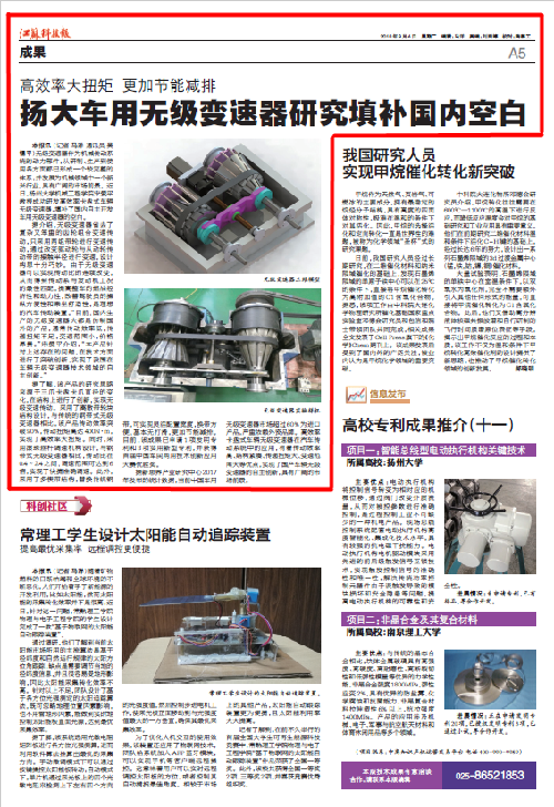 无级变速器作为机械传动系统的动力部件,从研制、生产到使用各方面都已形成一个较完整的体系,并发展为机械领域中一个新兴行业,具有广阔的市场前景。近日,扬州大学机械工程学院宋爱平教授成功研发高效率卡盘式车辆无级变速器,填补了国内自主开发车用无级变速器的空白。