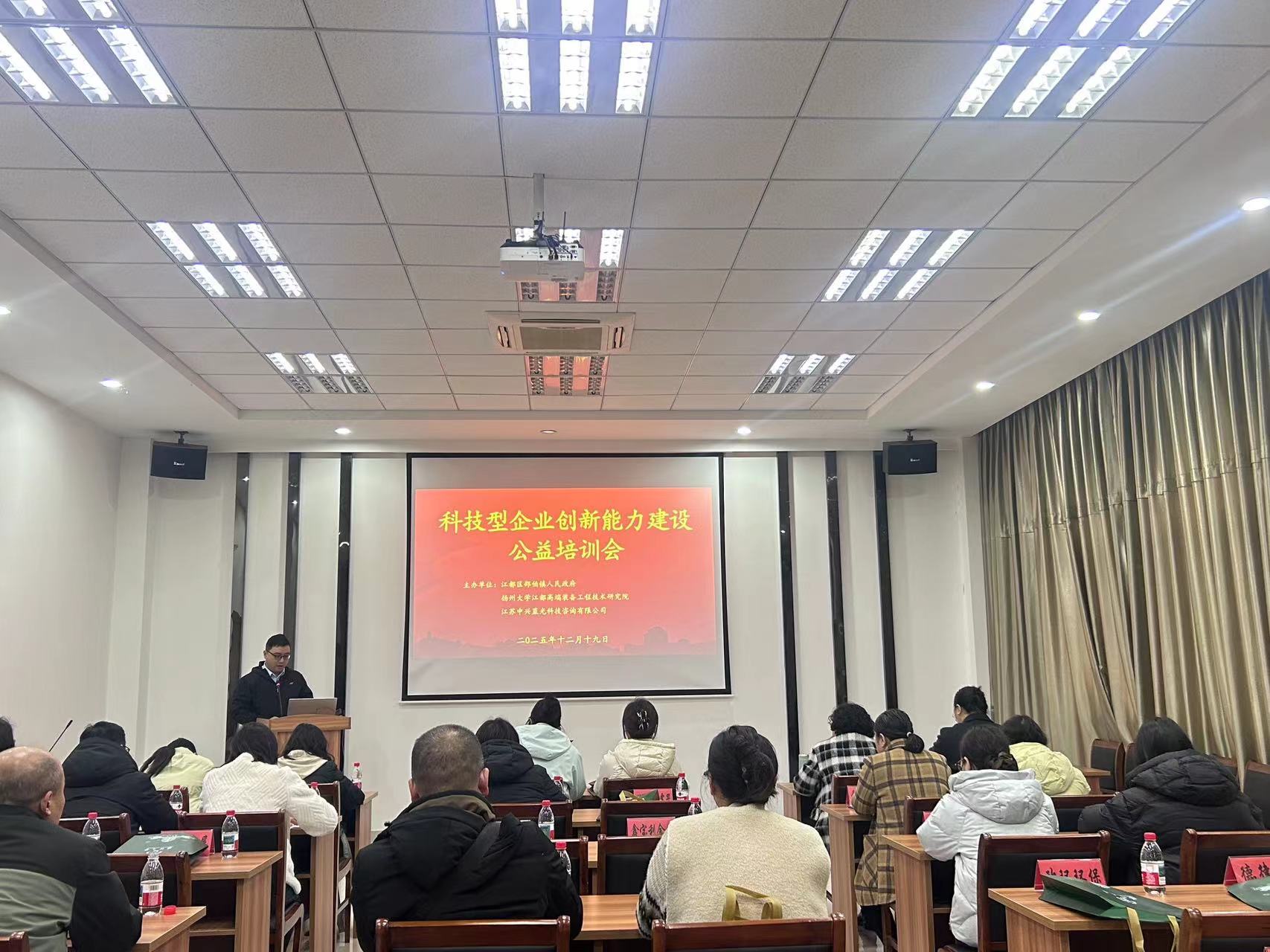 为进一步推动江都区科技型企业创新能力建设,12月19日,研究院在邵伯镇智创梦工场一楼会议室举办“科技型企业创新能力建设公益培训会”。